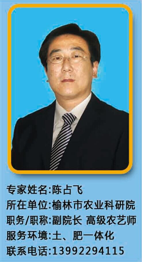 陳占飛:男,漢族,1968年10月出生于府谷縣古城鎮,1990年畢業于西北農業大學。1990年7月參加工作,現為榆林市農業科學研究院副院長。