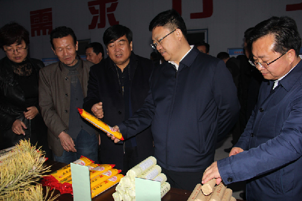 總經理高維軍向尉市長一行介紹到,東方紅小雜糧星創天地聚焦佳縣小雜糧主導產業,以榆林市東方紅食品開發有限責任公司為依托,采用“公司+創客+基地+農戶(重點貧困戶)”的模式建設運行的創新創業載體。小雜糧星創天地主要開展線下創客的孵化、培育和線上“互聯網+”網絡平臺開展小雜糧產品網上交易、質量追溯、遠程技術資訊等。目前共培育創客99名,其中以大學生為主的銷售創客28名,以返鄉農民工為主的小雜糧基地的創客54名,以加工手工掛面為主的創客17 名,年銷售額在1000萬元以上。星創天地服務中心組建了以科技特派員和三區人才為主的12名各級各類專家團隊,常年開展技術服務。結合精準扶貧對種植基地34戶貧困戶和苦菜基地97名殘疾人進行建檔立卡,制定相應的扶持措施,實施針對性的精準扶貧。通過星創天地的建設,構建了有利于企業長遠發展的生態系統,探索出一條企業自身發展和創客創業雙向促進的雙贏道路,產值由3100萬元增加到4000萬元,并打開了沿海廣闊的市場。