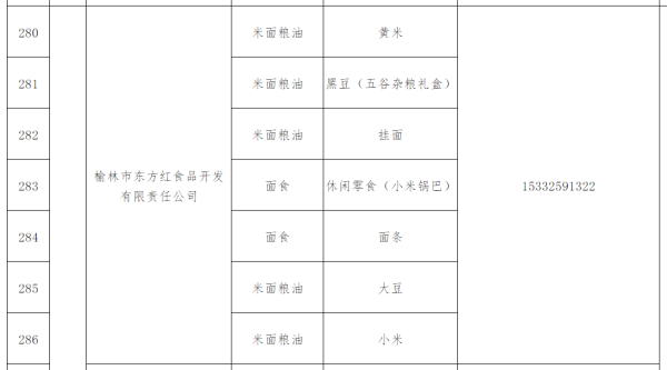 根據省扶貧辦《關于開展扶貧產品認定的通知》、市脫貧攻堅領導小組《關于印發深入開展消費扶貧行動決戰決勝脫貧攻堅十條措施的通知》(榆脫貧發〔2020〕7號)和《關于加大榆林市扶貧產品認定工作力度的通知》(榆政扶辦發〔2020〕18號)要求,市扶貧辦會同市級農業、市場監管、供銷、信用等部門對12個縣市區推薦的扶貧產品進行復核,確保扶貧產品質量合格、價格合理、帶貧真實。我市共有123家供應商、427個扶貧產品通過復核。其中,東方紅食品公司有以下產品被確認為扶貧產品: